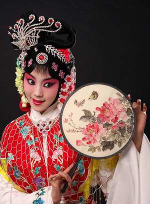 团扇,在舞台上是丫环、使女、奴婢一类角色使用的扇子。其表演动作与技巧有: